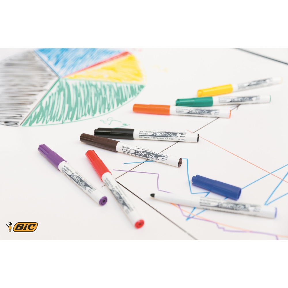 Pennarello Bic per lavagne cancellabili. Inchiostro a base di chetone.