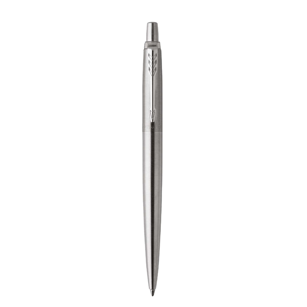Penna a sfera Parker con fusto in acciaio inossidabile e dotato di chiusura a punta di freccia lucida sempre in acciaio inossidabile.