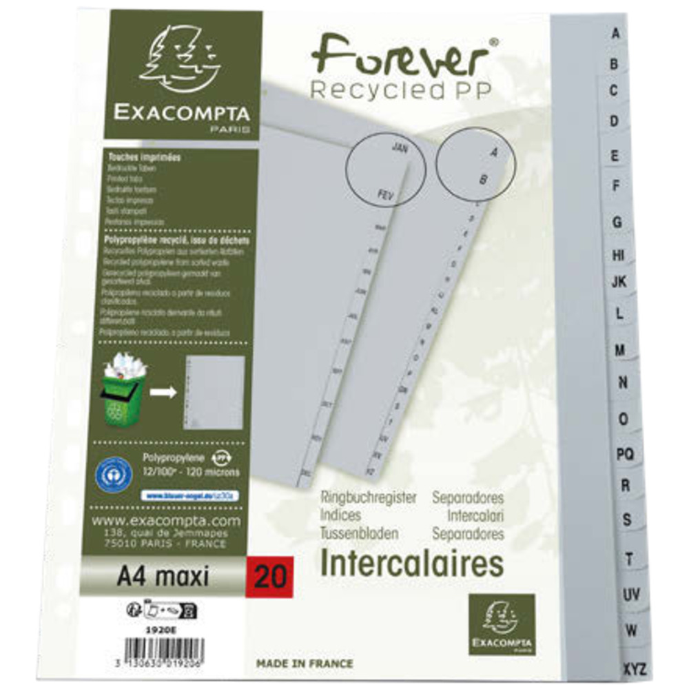 Divisori polipropilene riciclato Exacompta intercalari per registratori ad anelli, realizzati in PPL riciclato 120 micron, proveniente da scarti di plastica.