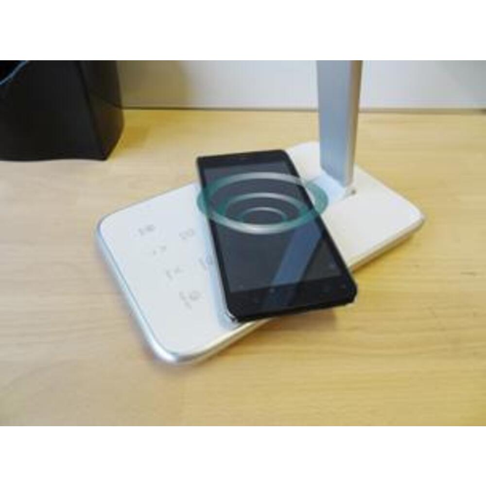 Lampada UNILUX da tavolo a LED con porta USB con stazione di ricarica batteria di smartphone ad induzione per dispositivi “Ql integrated”.