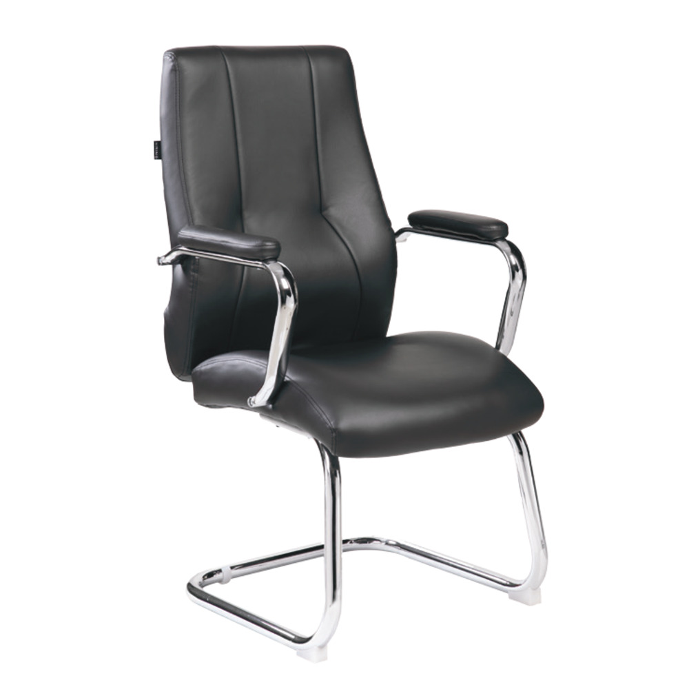Poltrona visitatore a schienale basso e braccioli inclusi.
