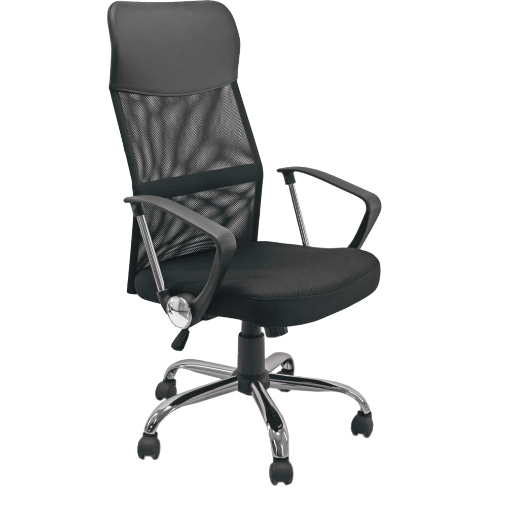 Poltrona presidenziale Houston a schienale alto con poggiatesta e braccioli inclusi.