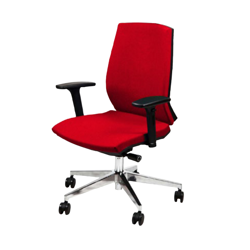 Nella versione bassa senza poggiatesta, schienale regolabile up-down e con supporto lombare regolabile.