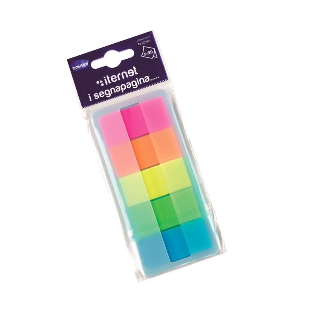20 segnapagina per colore, in unico pratico dispenser tascabile.