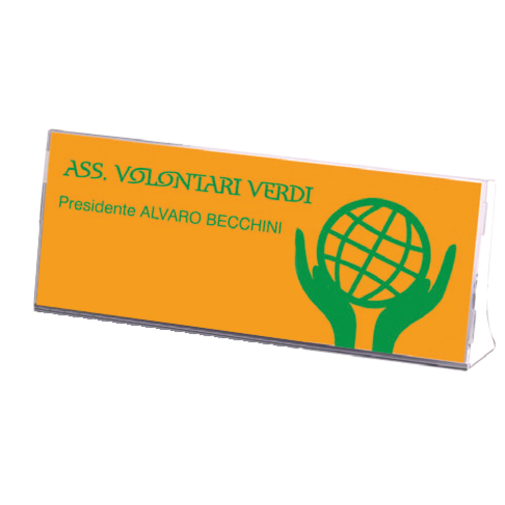 Porta nome/segnaposto base a “L“ ideale per conferenze, corsi e riunioni di lavoro.