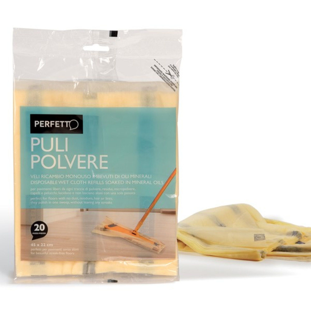 Confezione ricambio da 20 retine gialle monouso cm. 45X22 per scopa pulipolvere.