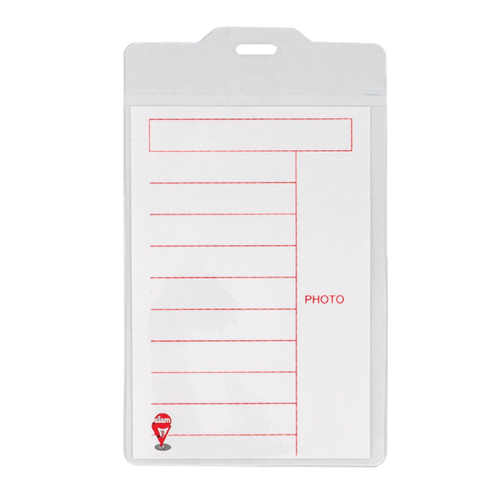 Portanome bifacciale verticale in PVC trasparente morbido.