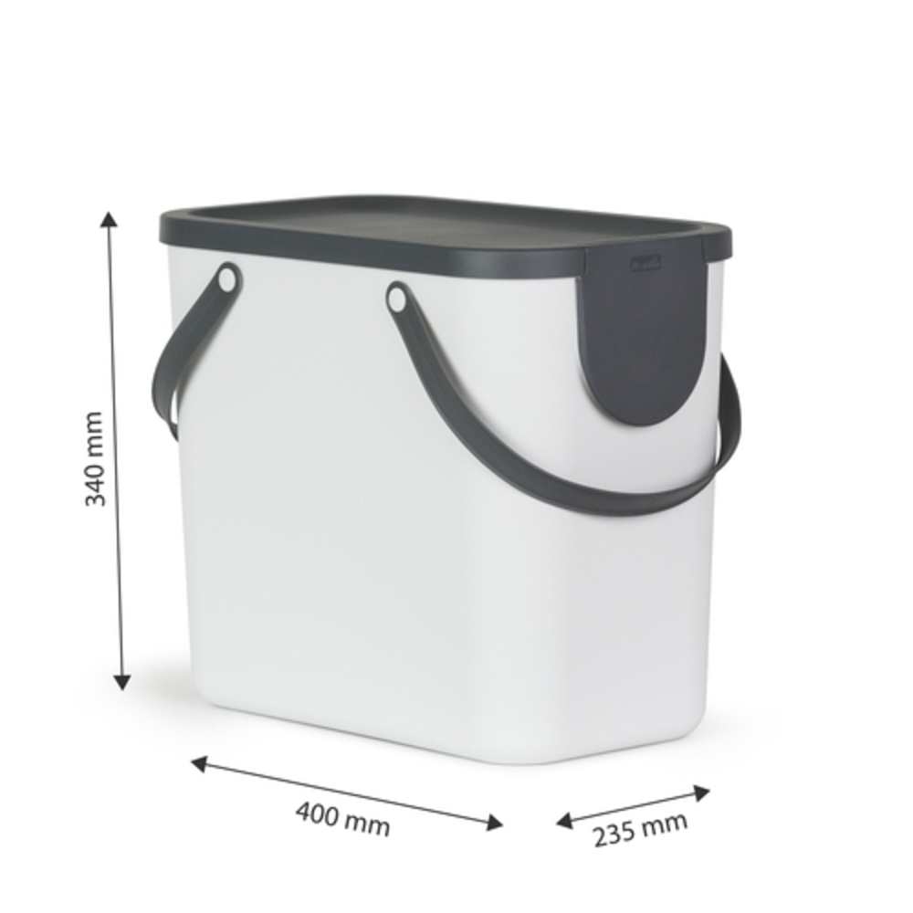 Cestino impilabile per raccolta differenziata, realizzato in robusta plastica riciclata, facile da trasportare grazie alle pratiche maniglie, capienza da 25 litri.
