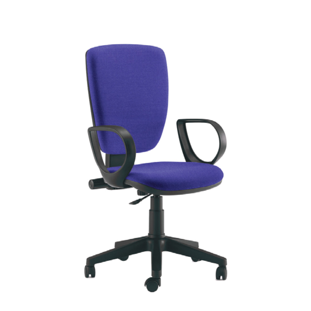 Poltrona operativa Elleci Office con struttura in faggio multistrato e imbottitura in poliuretano. Schienale regolabile e meccanismo a contatto permanente. Braccioli fissi in polipropilene. Tessuto CLASSE 1. Dimensioni: 68x65x102-114 cm.