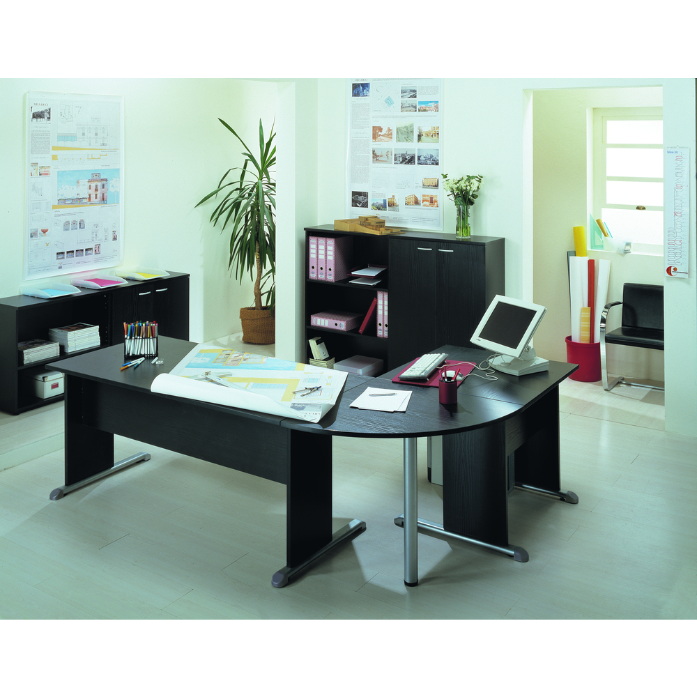 Armadi a giorno o completabili con ante dotate di serratura. Top sp. 22mm, struttura sp. 18mm, ripiani riposizionabili da 18mm.