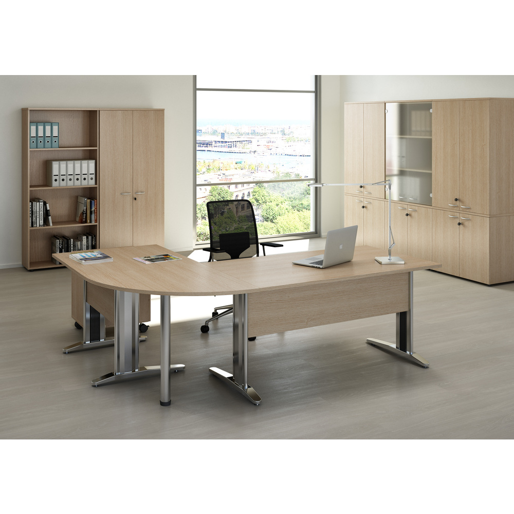 Armadi a giorno o completabili con ante dotate di serratura. Top sp. 22mm, struttura sp. 18mm, ripiani riposizionabili da 18mm.