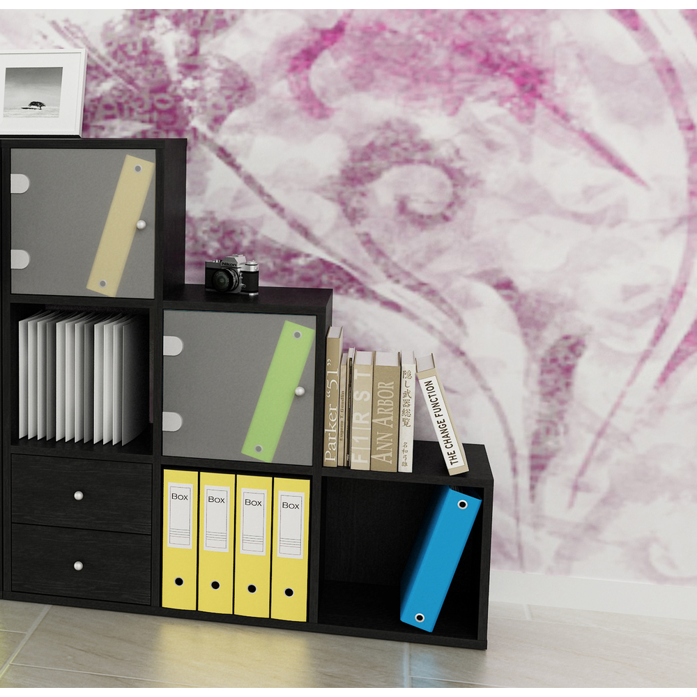 Librerie Rainbow realizzate in melaminico bilaminato antigraffio e antiriflesso spessore 16mm conforme alle norme UNI e EN classe E1.