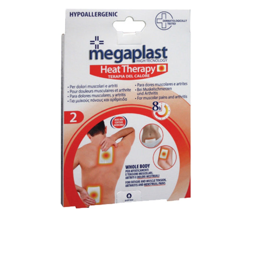 Cerotto riscaldante Megaplast adatto per affaticamenti e tensioni muscolari, artitri ecc. Produce un piacevole calore per circa 8 ore. Non contiene farmaci.