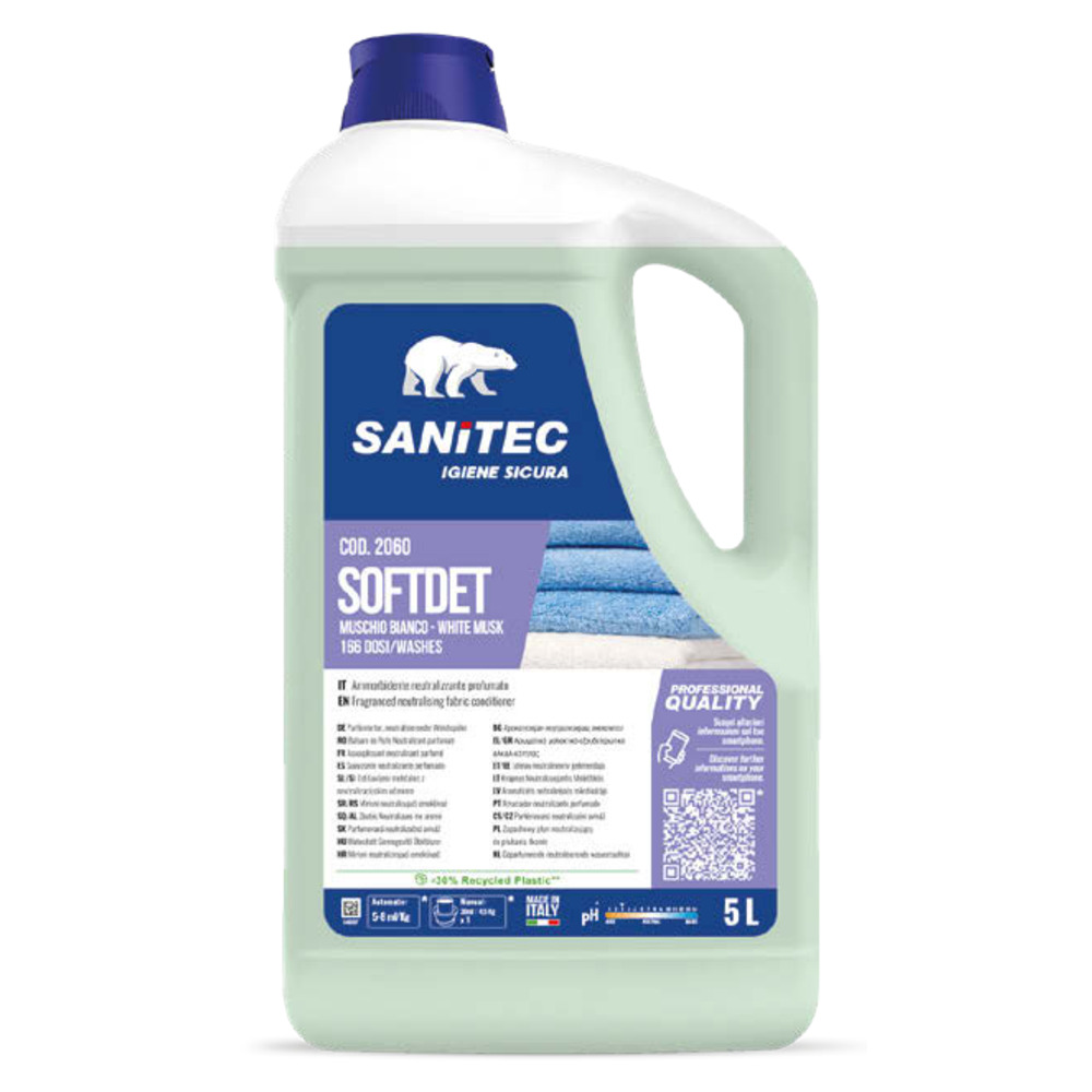 Additivo ammorbidente Sanitec concentrato per lavaggio a mano e in lavatrice.