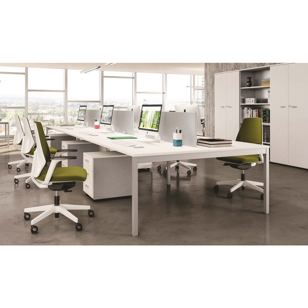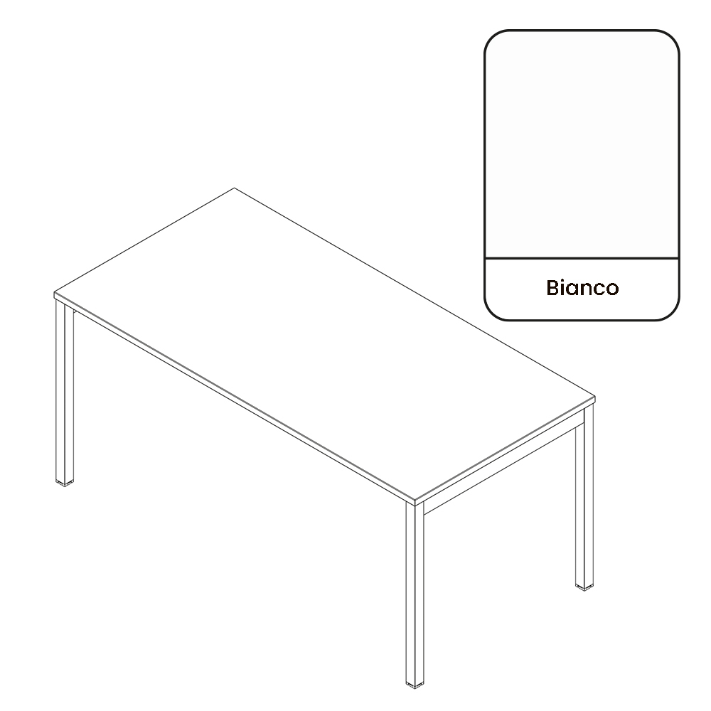 Piano scrivania della Linea Practika realizzato in conglomerato ligneo spessore 25 mm, rivestito con melaminico antiriflesso, antigraffio e lavabile, bordati sui 4 lati in ABS antiurto in tinta spessore 2 mm.
