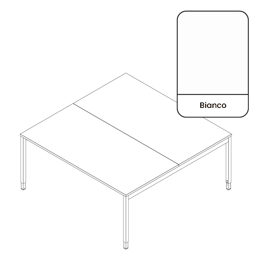 Piano scrivania della Linea Practika realizzato in conglomerato ligneo spessore 25 mm, rivestito con melaminico antiriflesso, antigraffio e lavabile, bordati sui 4 lati in ABS antiurto in tinta spessore 2 mm.