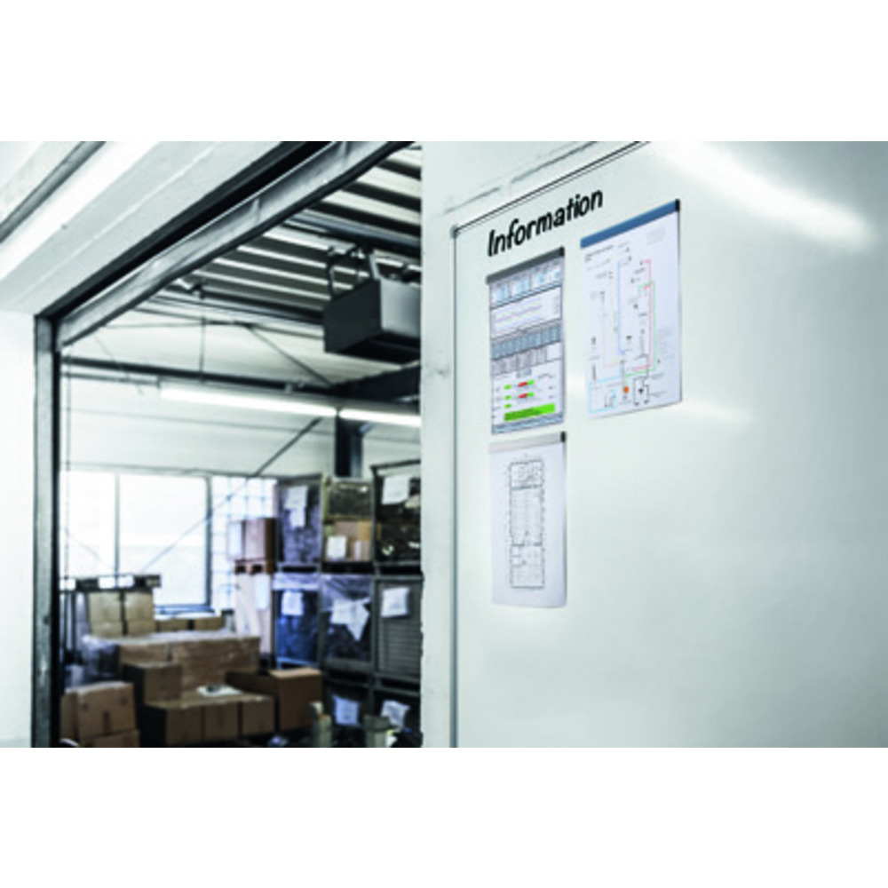 Barra con chiusura magnetica per appendere fogli informativi nel formato A5 orizzontale oppure formato A4 verticale.