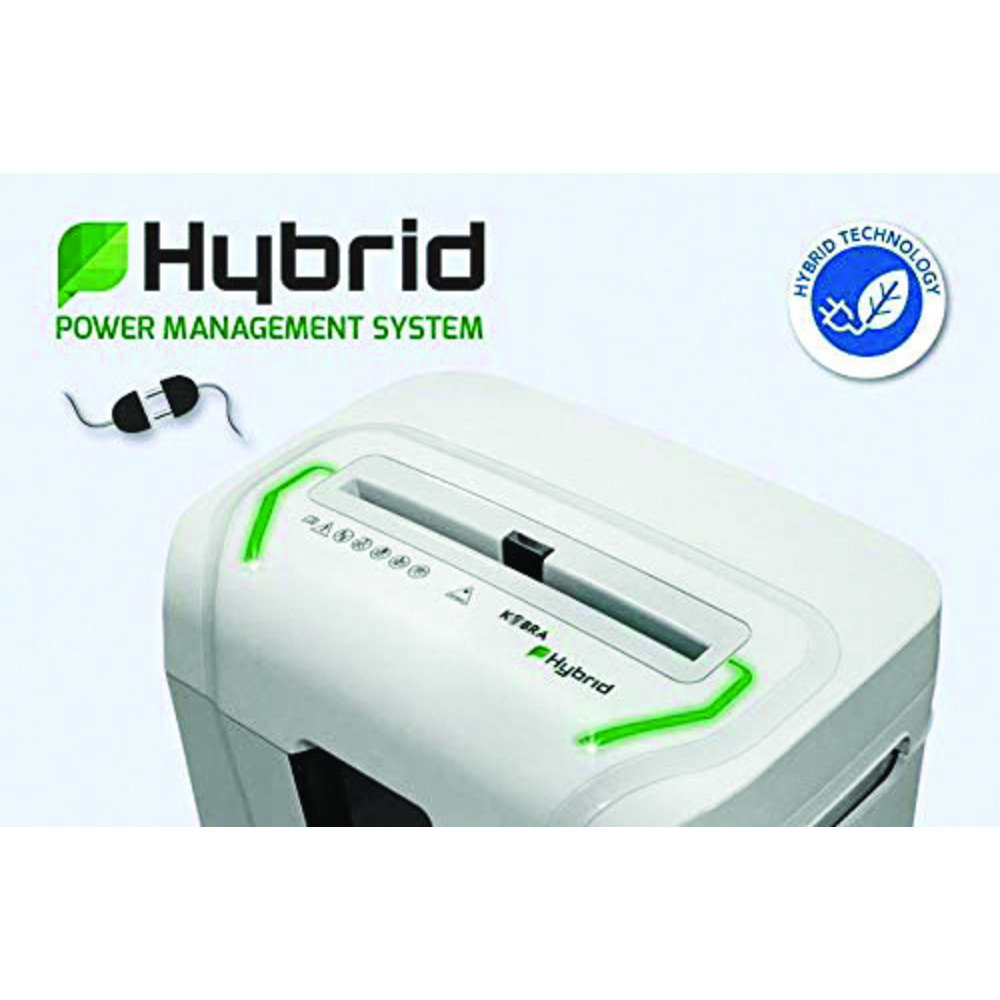 Distruggidocumenti Kobra Hybrid tritatutto equipaggiato con l’esclusiva tecnologia Hybrid per il controllo dell’energia: una tecnologia che permette il funzionamento tramite l’utilizzo di energia accumulata durante il funzionamento e in seguito il distacco automatico dalla rete a fine distruzione per zero consumi elettrici.