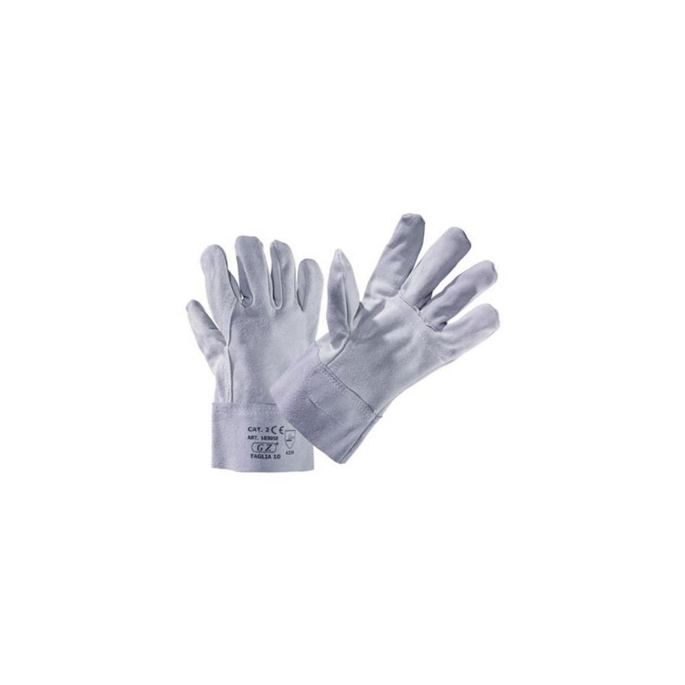 Guanti in pelle crosta di GZ con palmo a doppio strato e manichetta da 7 cm.