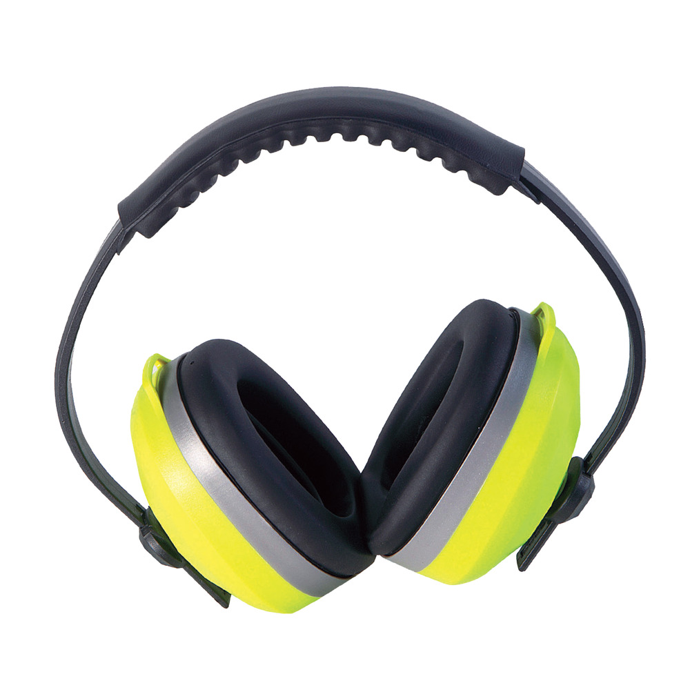 Cuffie di Medop con coppe di colore giallo brillante che rendono gli auricolari ad altissima visibilità, adatti per attività in cui è necessario individuare visivamente il lavoratore.