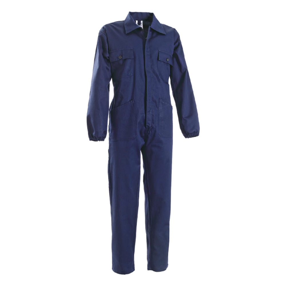 Tuta lavoro modello “ORO” di Global Trading con cerniera coperta, quattro tasche, elastico in vita e ai polsi e portametro.