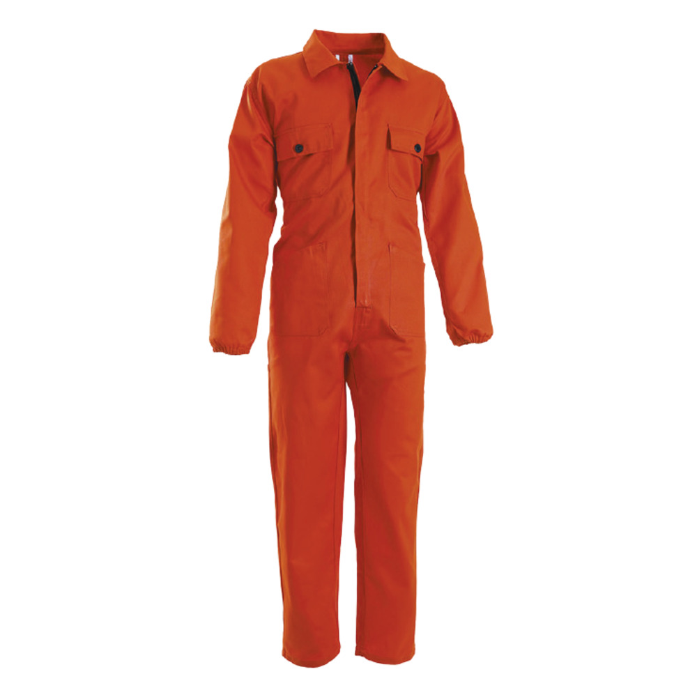 Tuta lavoro modello “ORO” di Global Trading con cerniera coperta, quattro tasche, elastico in vita e ai polsi e portametro.