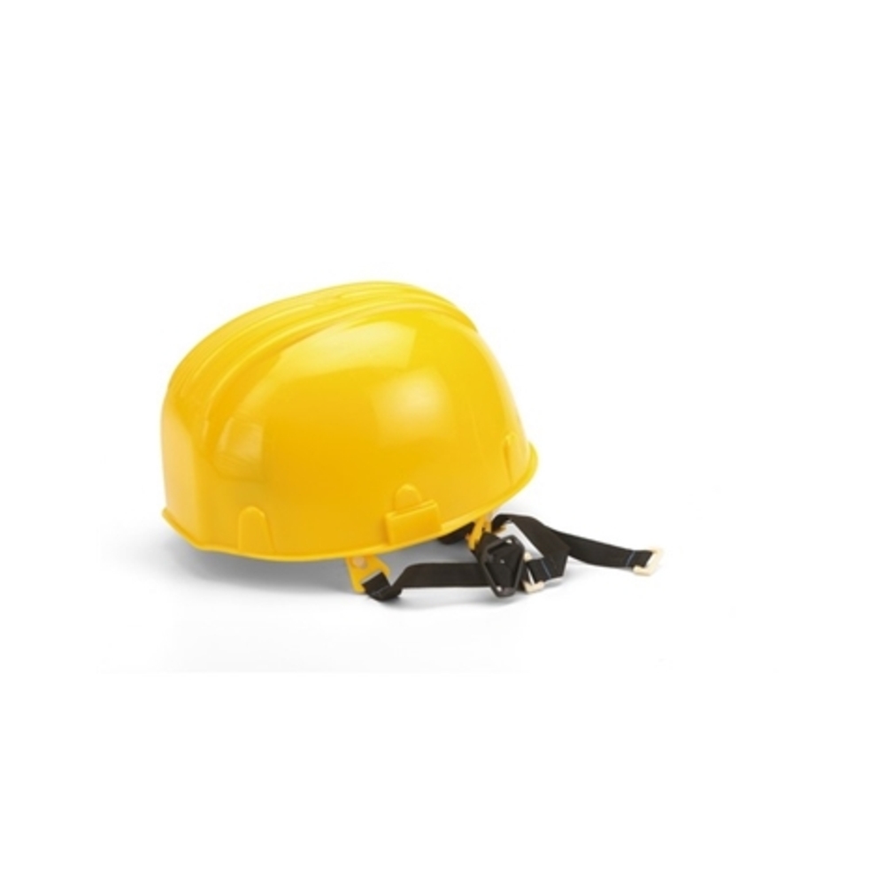 Elmetto di Portwest in polietilene ad alta densità trattato anti U.V., interno in nastro di poliestere, bardatura in polietilene con regolazione, fascia antisudore in pelle beige, sottogola con 4 punti di aggancio.