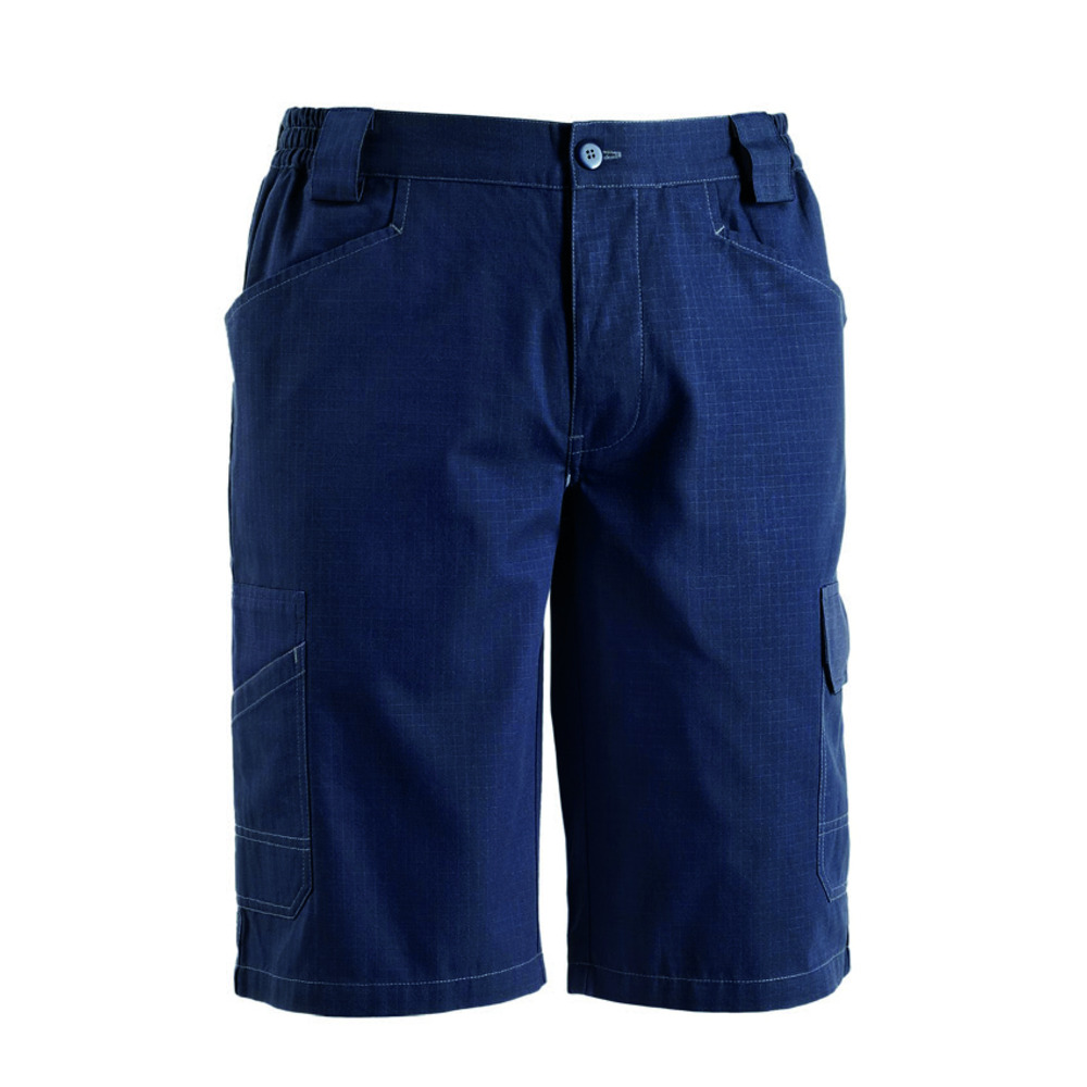 Bermuda multitasche di Global Trading in tessuto “Ripstop” antistrappo resistente alle lacerazioni con elastici laterali in vita e bottoni coperti.