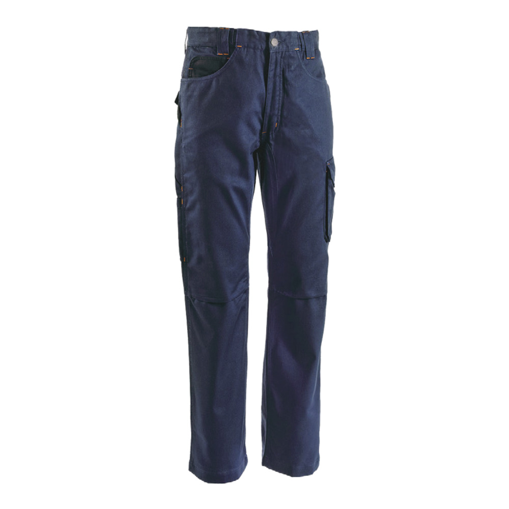 Due tasche e taschino portamonete davanti, due tasconi posteriori di cui uno chiuso da pattina con velcro, tascone con pattina chiusa da velcro su gamba sinistra, tasca portametro con taschino supplementare chiuso da velcro e passante portamartello su gamba destra.