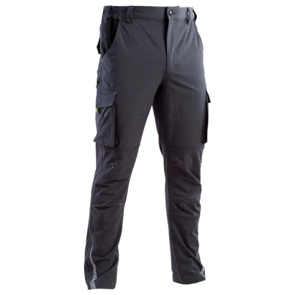 Dettagli rifrangenti sul fondo gamba, travette in tinta giallo fluo, ginocchia preformate, chiusura centrale con cerniera e bottone.