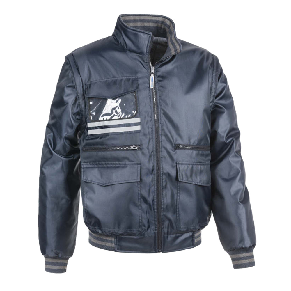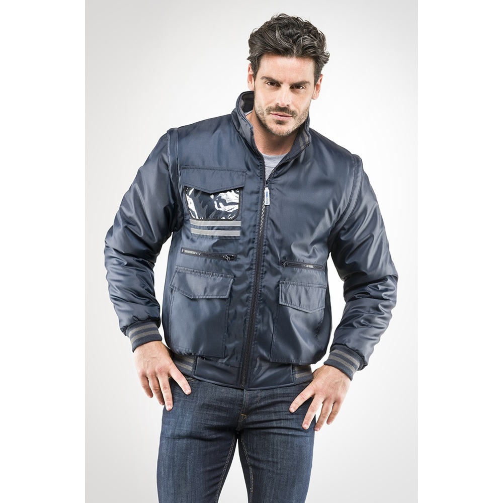 Rib al collo e in vita bande alta visibilità sul retro tasca interna per personalizzazione maniche staccabili. Interno in pile.