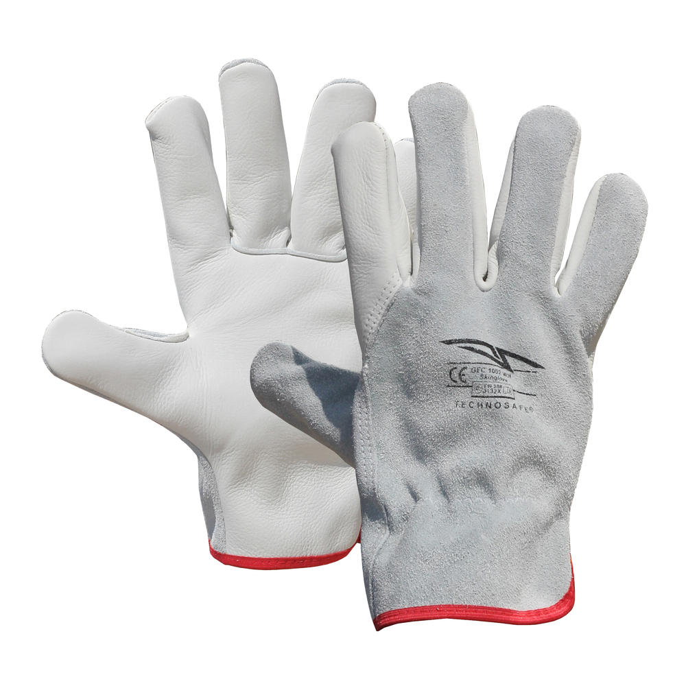 Guanto con forma anatomica (destra/sinistra), modello Driver Combi, doppia cucitura di rinforzo tra indice e pollice, elastico stringipolso applicato internamente sul lato dorso.
