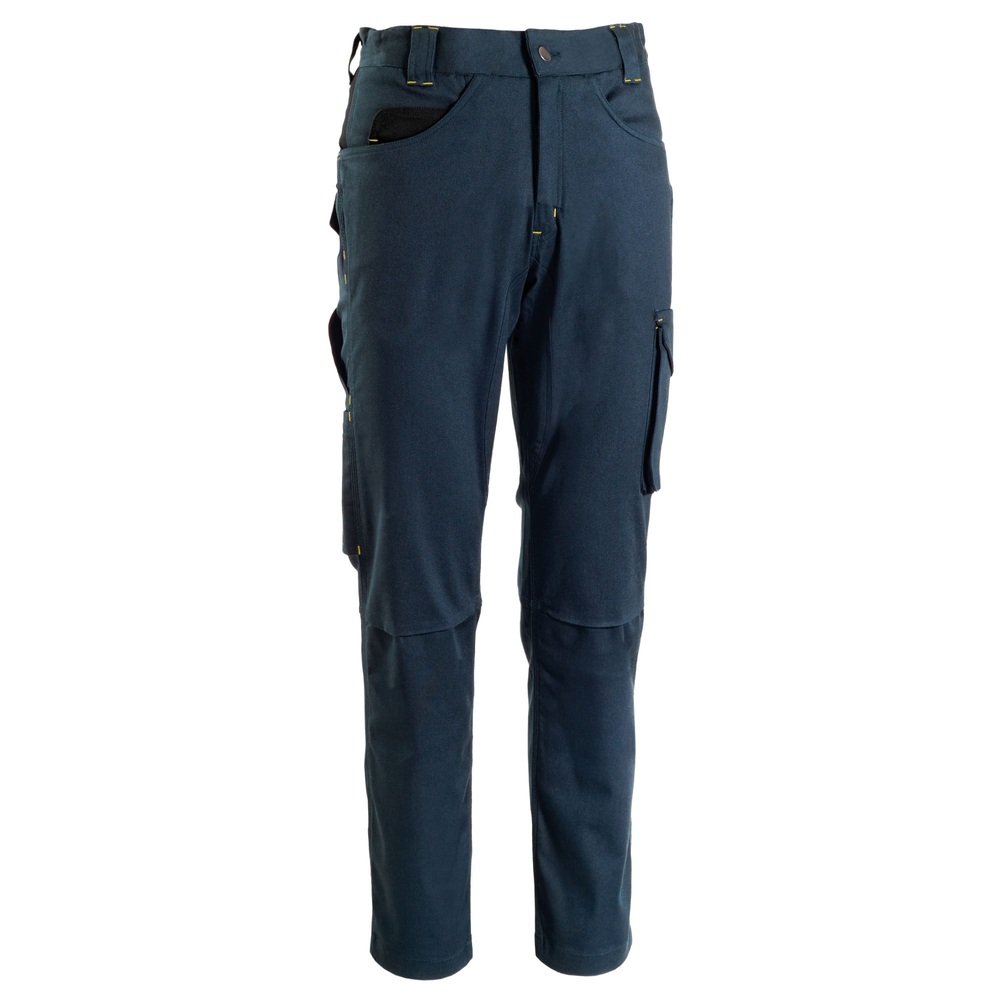 Pantalone Flexy Stretch di Global Trading bicolore multitasche con cuciture a contrasto, elastico in vita e soffietto alle ginocchia per un’ottima vestibilità, cerniera coperta, cavallo rinforzato.