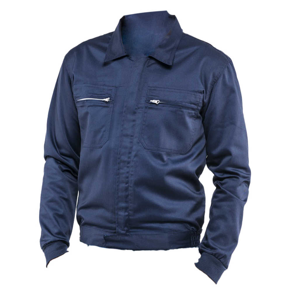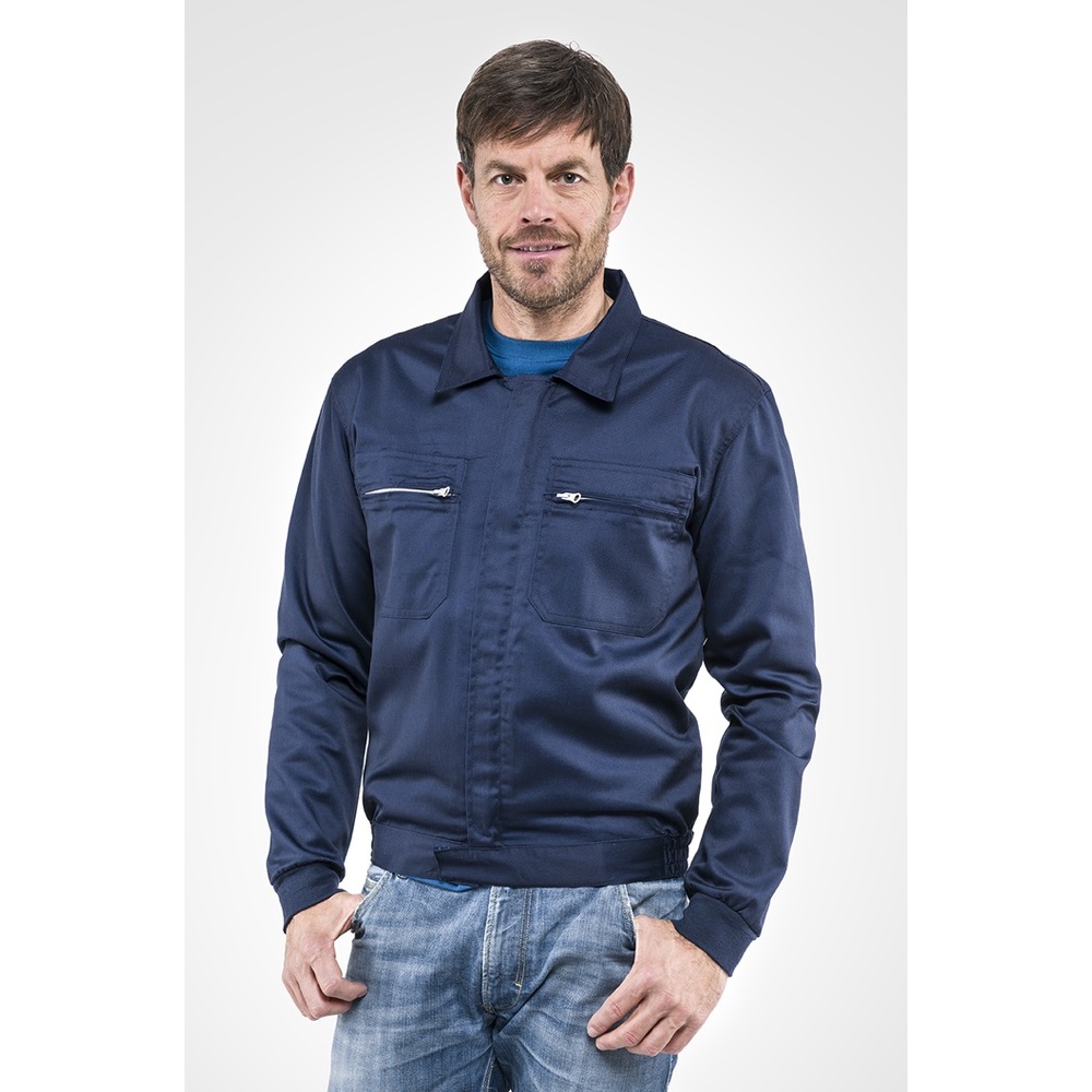 Giubbino in poliestere/cotone con chiusura centrale, con cerniera ricoperta da pattina e velcro sul fondo. 2 tasche sul petto con cerniera e rib ai polsi elastico sui fianchi.