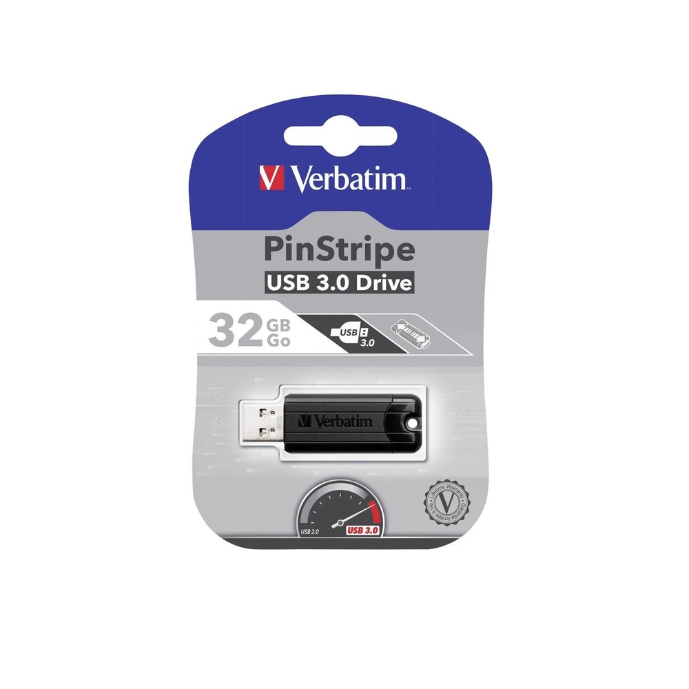 La chiavetta USB 3.0 Pinstripe di Verbatim è ideale per l'archiviazione dati mobile. Compatibile con Windows 7+, Mac OS X 10.4+ e Linux 2.4.0+.