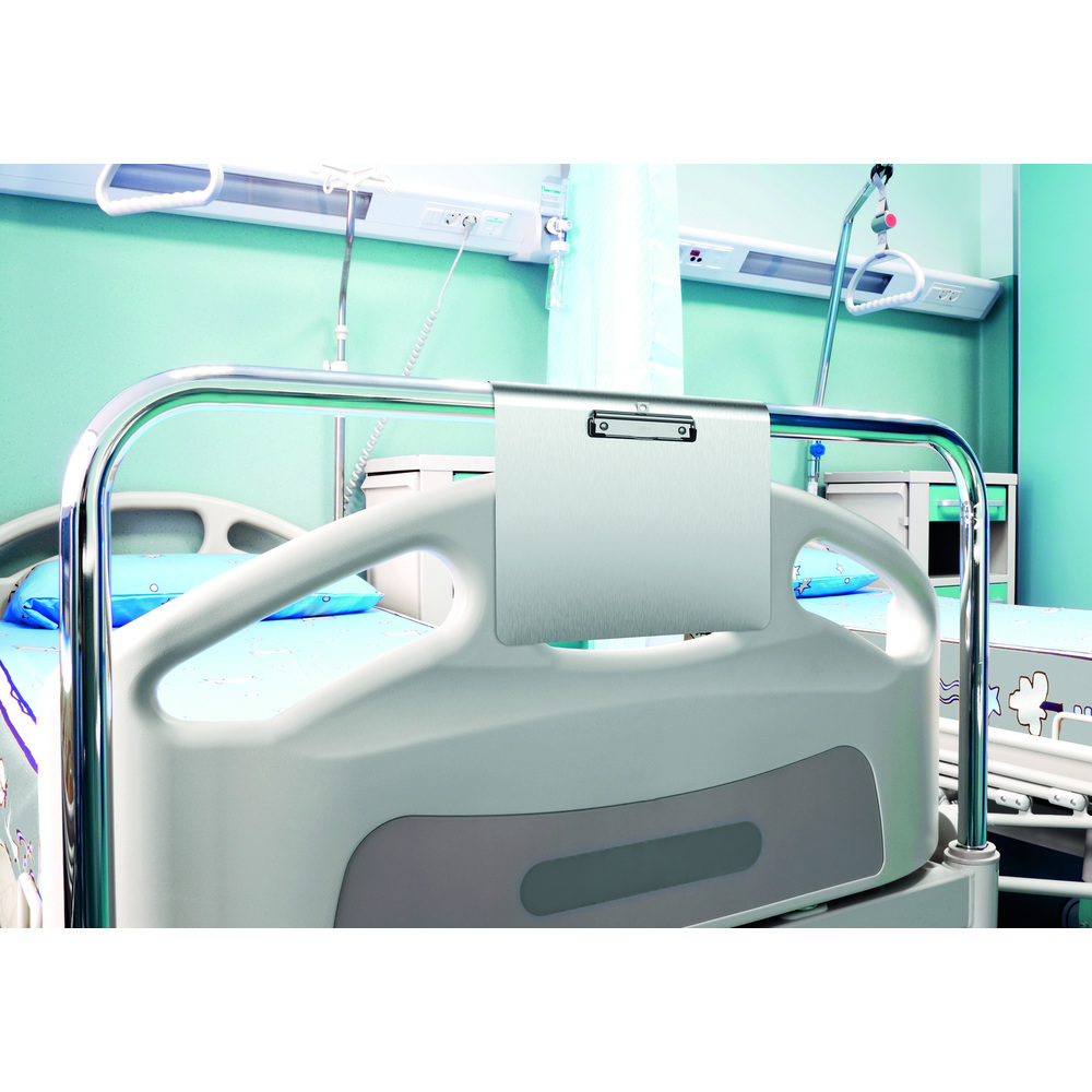 Il portablocco Maul medic, in alluminio anodizzato, è ideale per ambienti ospedalieri e sistemi separatori fino a 4,5 cm. Ha clip easy-grip, occhiello retrattile e formato A4 (36x25x6 cm).