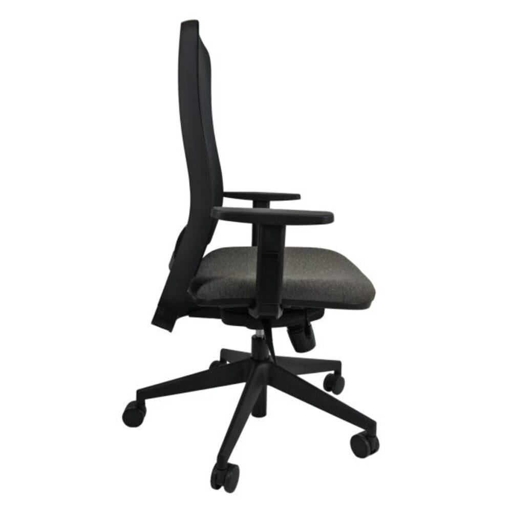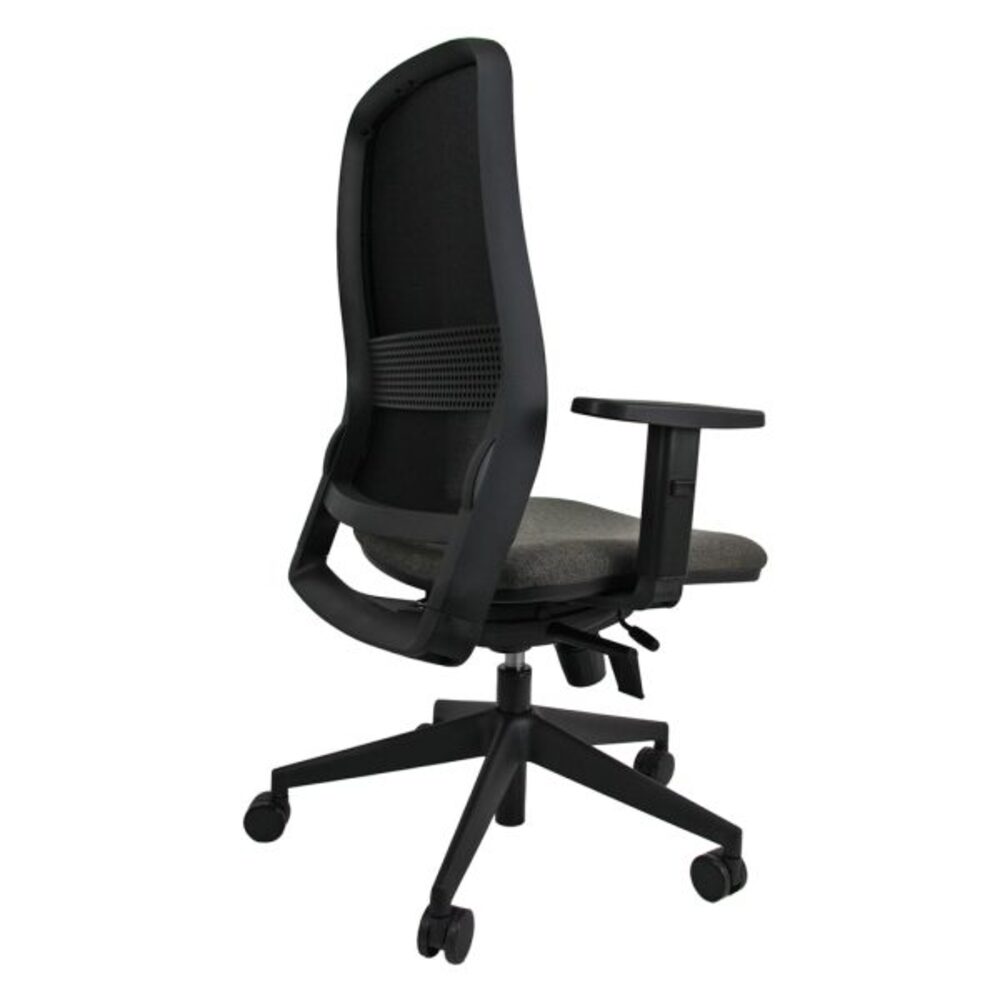 Nella versione bassa senza poggiatesta, schienale regolabile up-down e con supporto lombare regolabile.