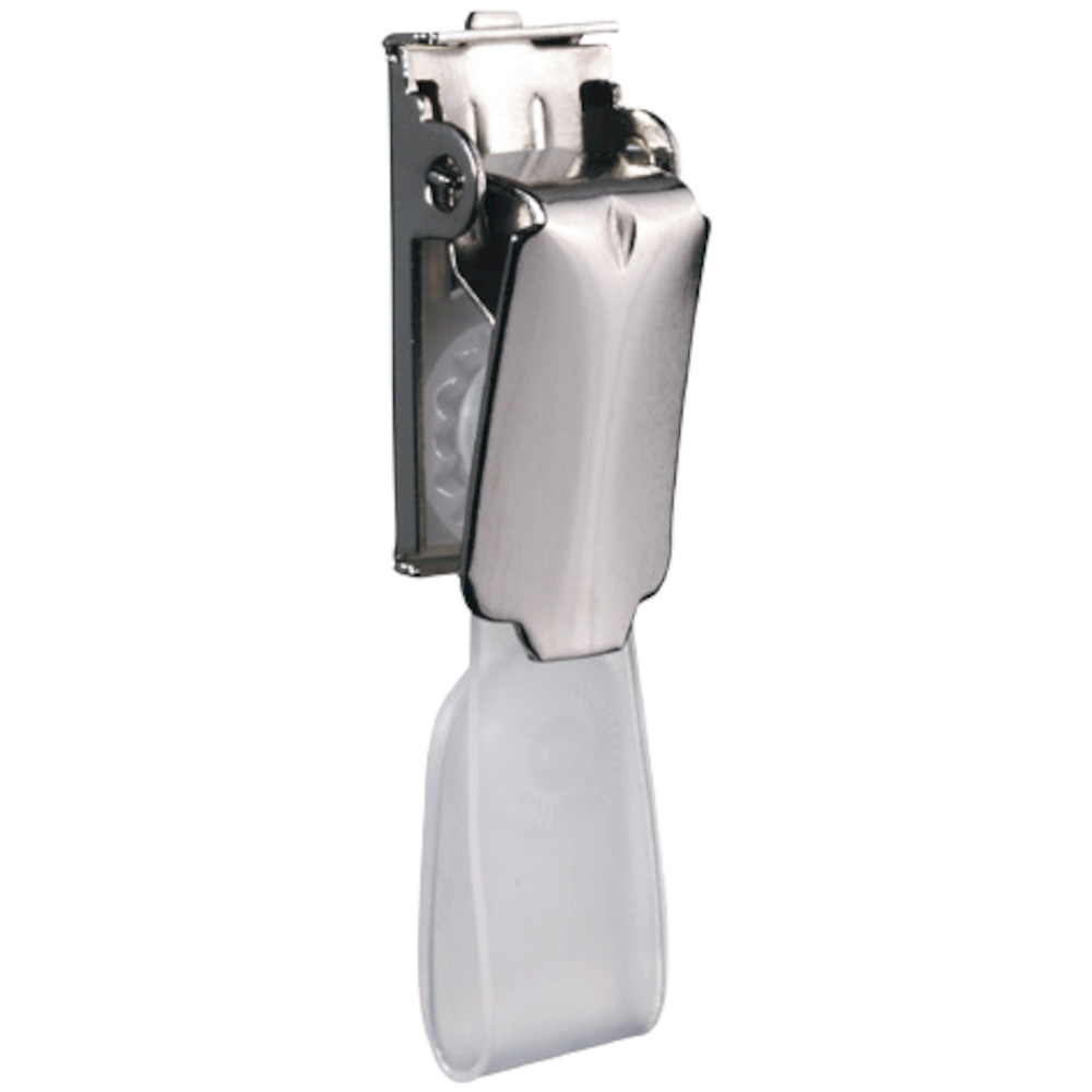 La pinza in metallo è dotata di protezione salva tessuto per evitare il danneggiamento degli abiti.
