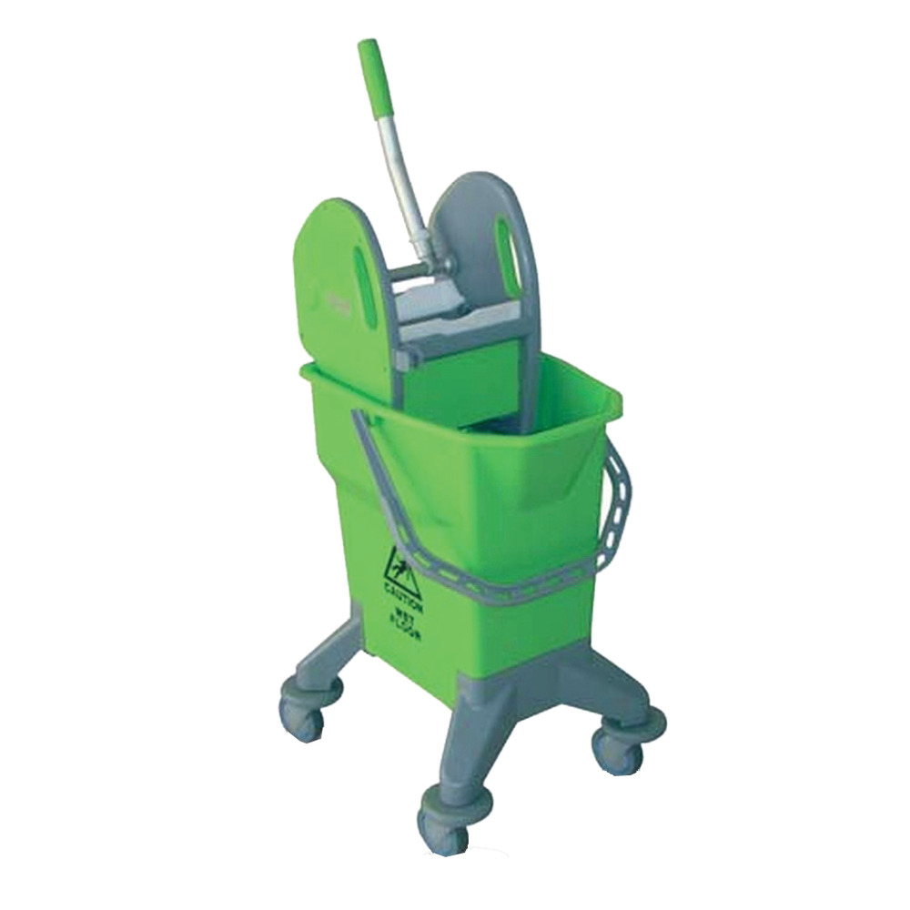 Carrello di pulizia pavimenti monovasca da 25 litri, con pressa per l’utilizzo della frangia mop.