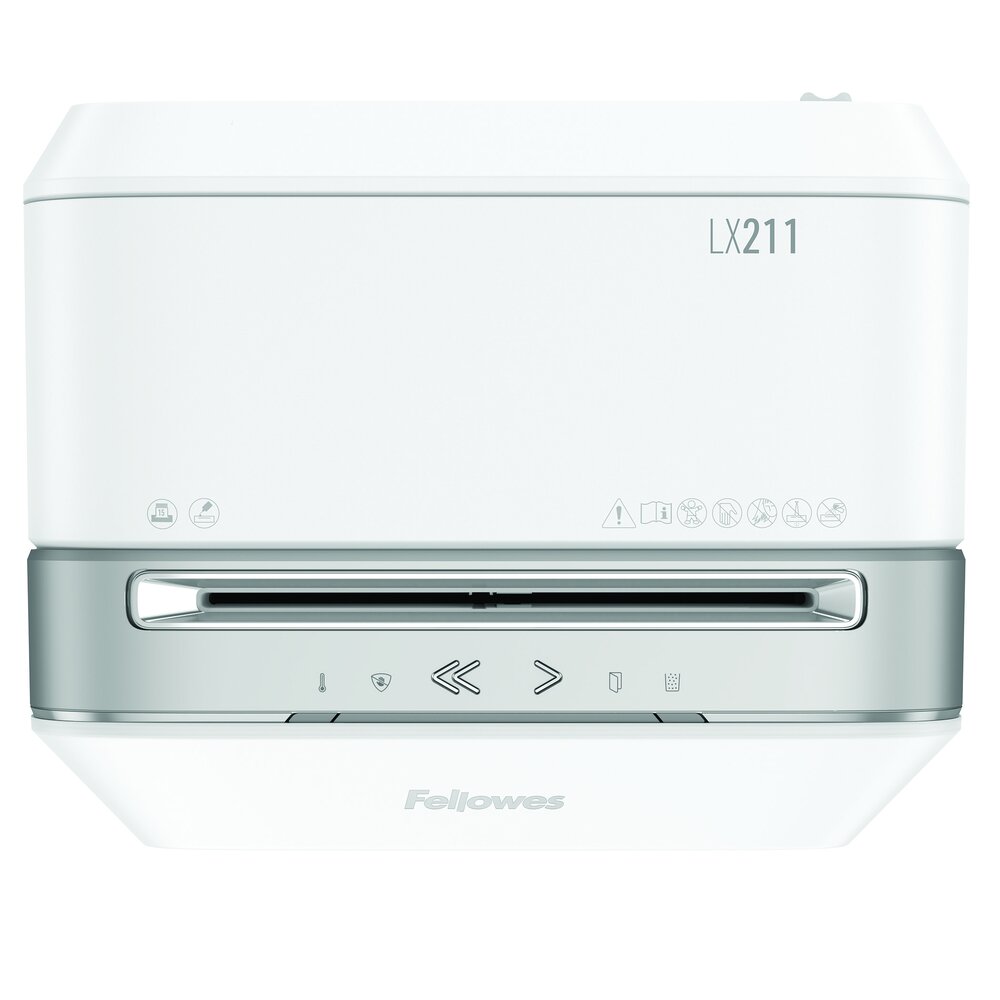 Il tritatutto Fellowes LX211 con tecnologia IntelliBAR offre massima produttività. SafeSense protegge da mani e animali, mentre indica cestino pieno e ciclo. Taglia fino a 15 fogli (2x12mm) con velocità di 2 MPM.