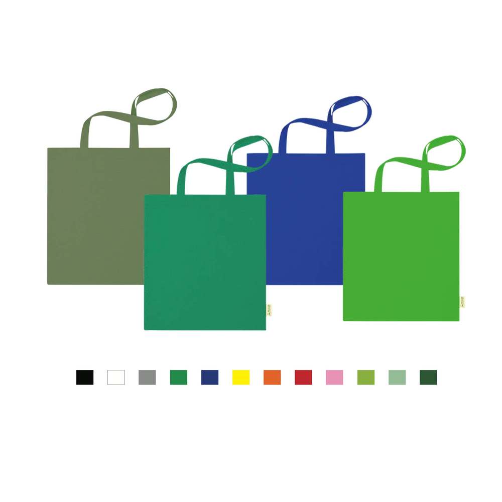 Borsa shopper in cotone riciclato 140gr/m2, ampio scomparto principale, manici lunghi rinforzati.
