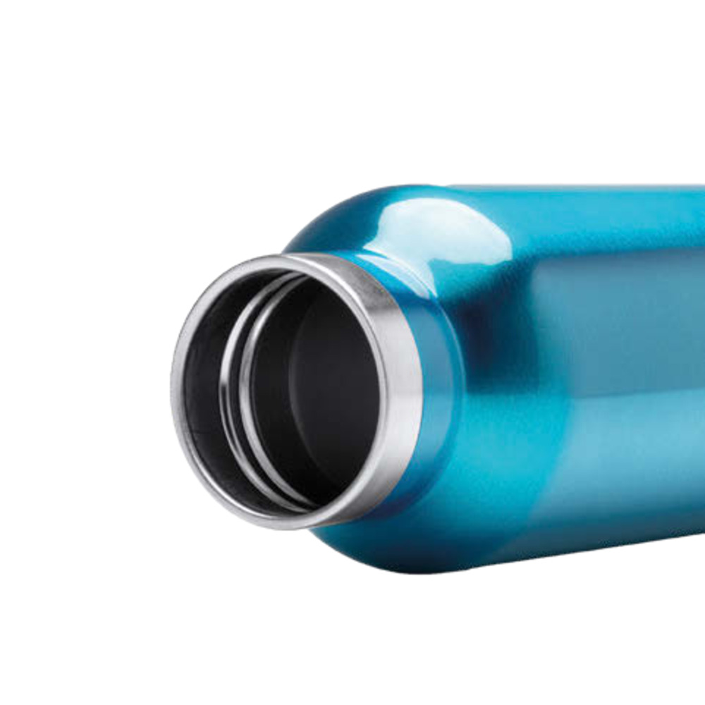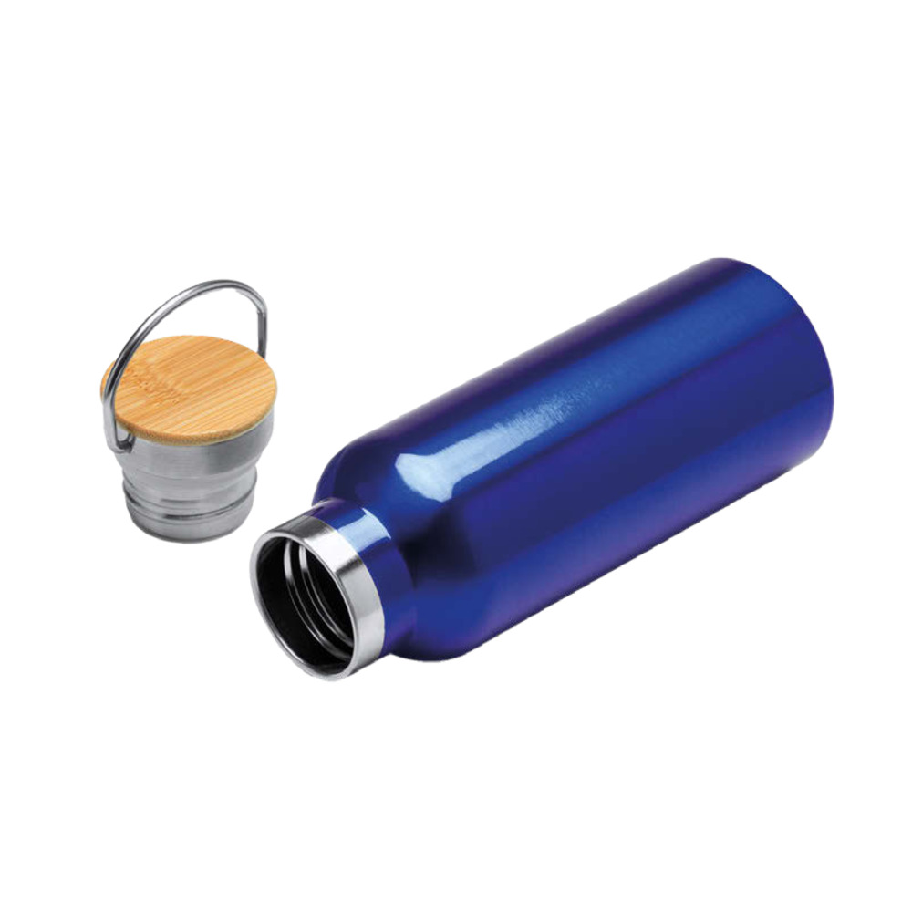 Bottiglia termica in acciaio inossidabile a doppio strato, lucida, con tappo a vite in bambù.
