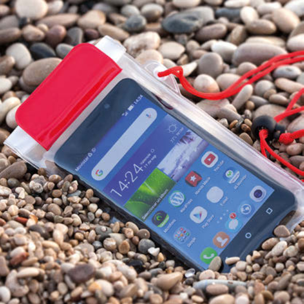 Custodia in PVC, impermeabile, con superficie touch screen e doppia chiusura di sicurezza per preservare la sua impermeabilità.