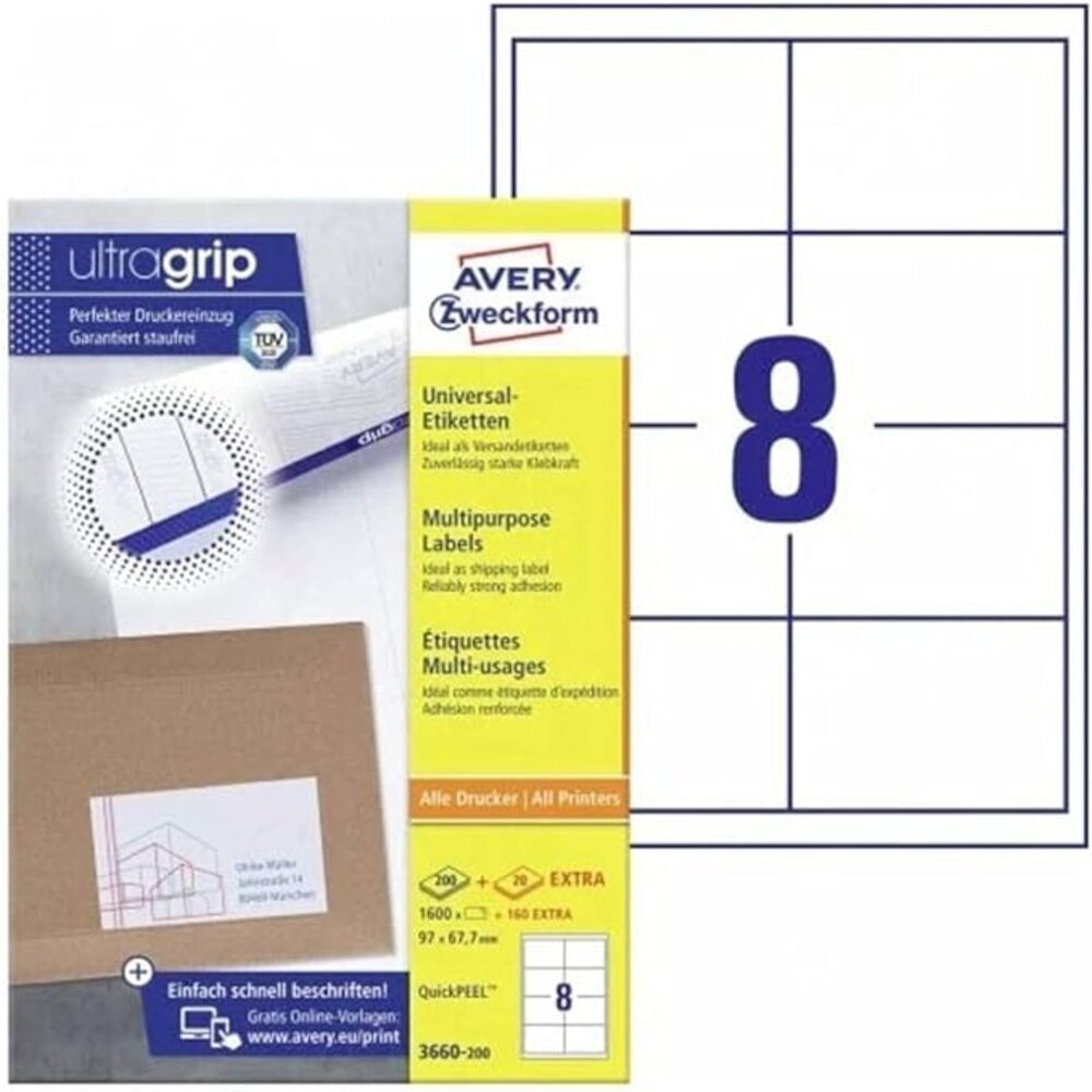 Etichette Avery 3660-200 sono ideali per utilizzi diversi. Il pacco contiene 200 fogli, per un totale di 1600 etichette adesive.