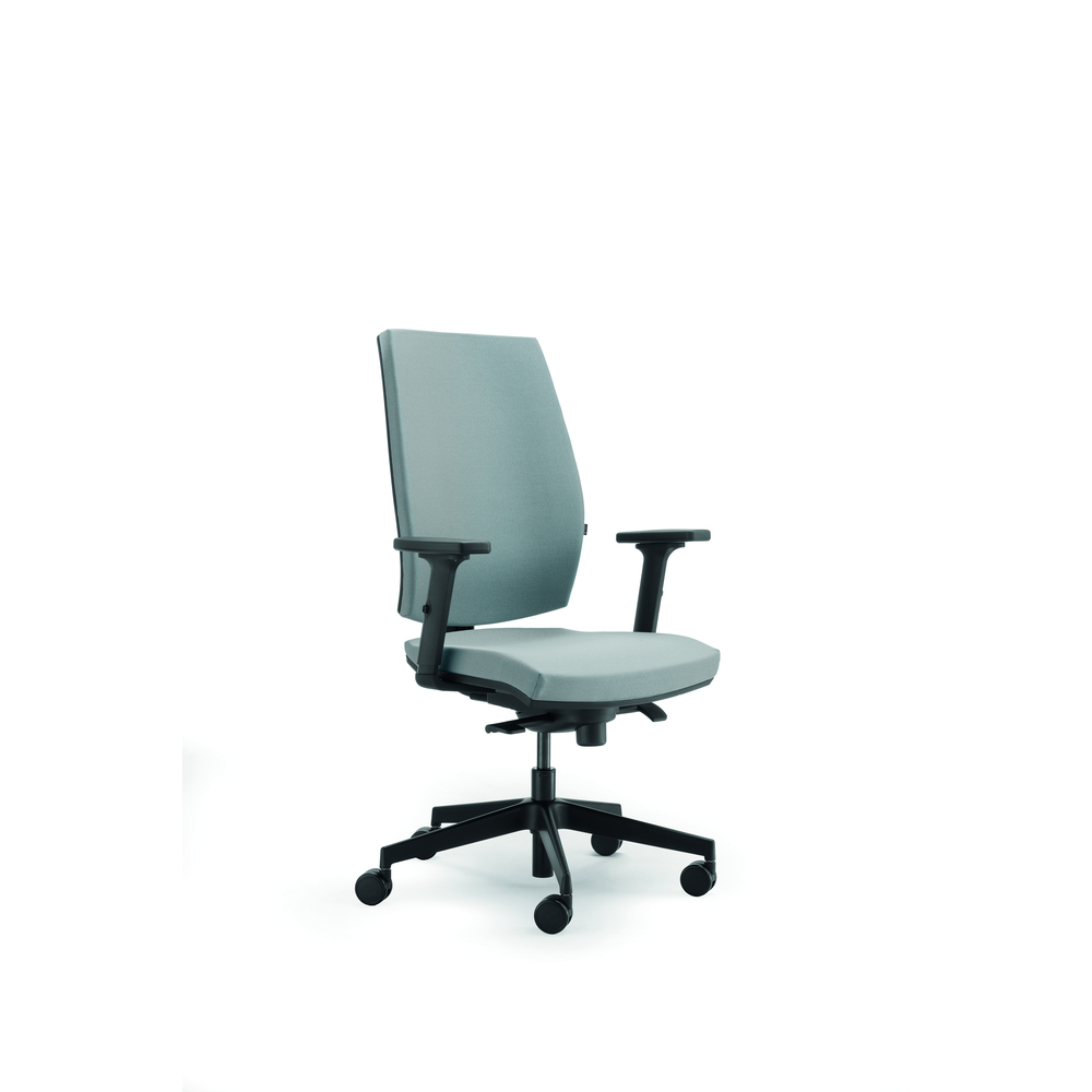 Seduta semidirezionale imbottita in poliuretano ignifugo (classe 1IM) con meccanismo synchro e 5 posizioni di blocco. Offre regolazioni e, opzionalmente, braccioli e poggiatesta. Portata massima: 140 kg.