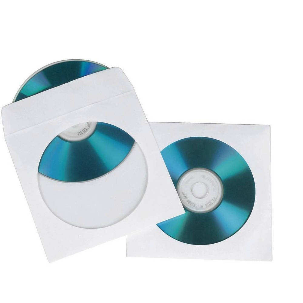 Buste hama di carta per CD/DVD, confezione da 100 pezzi, bianco.
