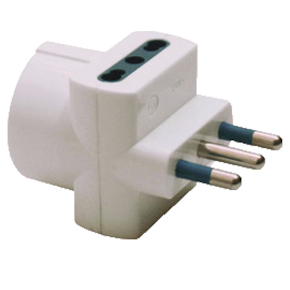 Adattatore versatile per casa e ufficio. Dotato di spina 2P+T 16A, due prese bipasso 10/16A e una schuko.