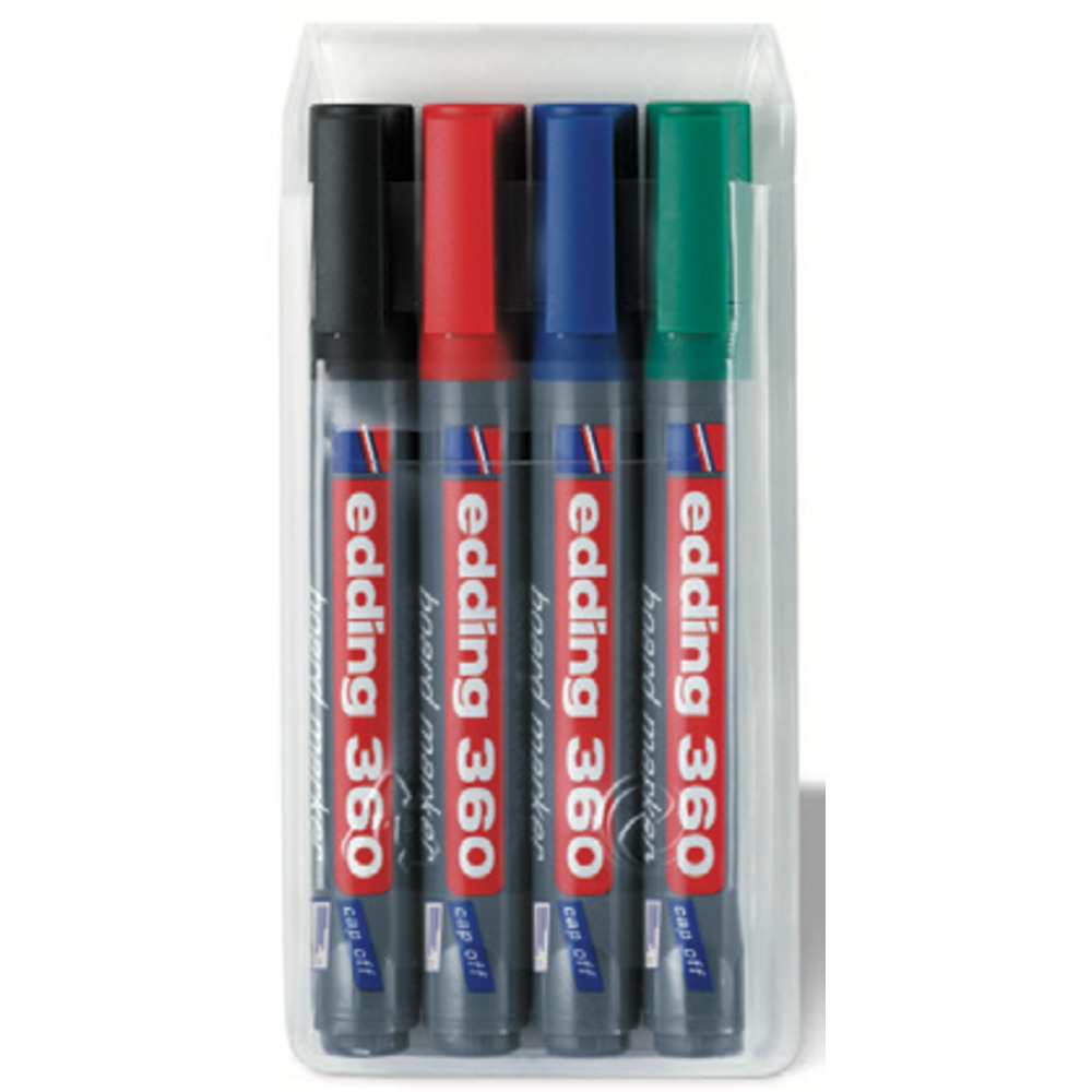 Marcatori Edding 360 punta conica per lavagne bianche con inchiostro pigmentato inodore.