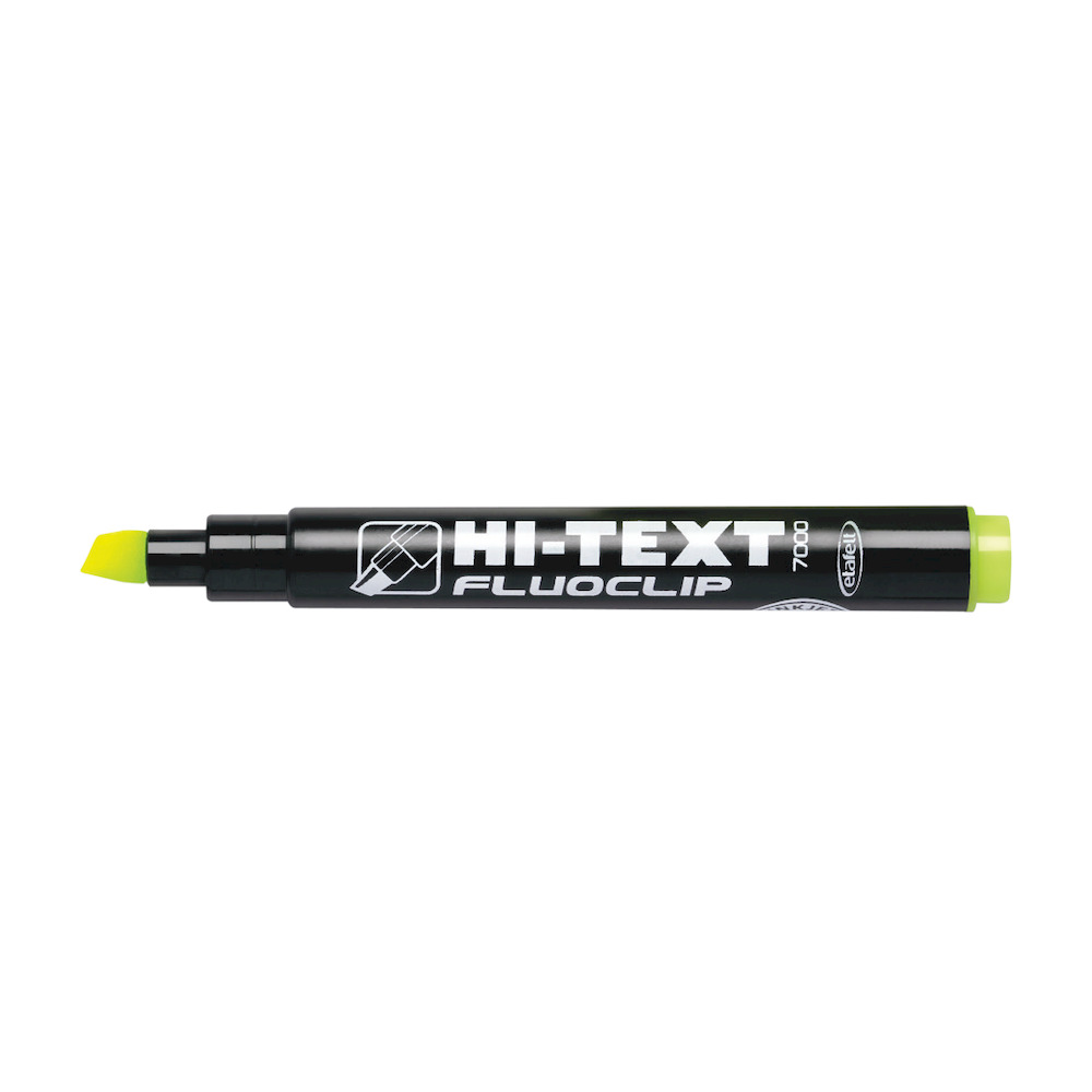Evidenziatore Etafelt a penna con cappuccio e clip. Ideale per carta, fotocopie e fax. Punta scalpello, offre un doppio tratto di scrittura: 2,00 e 5,00 mm.