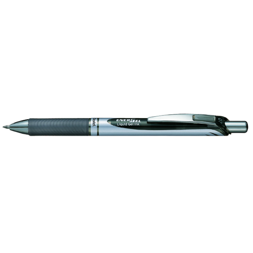 Penna Pentel con meccanismo a scatto e grip in gomma. Punta conica da 0,7 mm ideale per mancini, offre tratto preciso (0,35 mm) senza sbavature e asciugatura rapida.